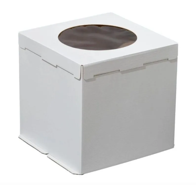 Коробка для торта. Она обеспечивает дополнительную защиту содержимого при транспортировке, предотвращает деформацию коржей и сохраняет эффектный дизайн десерта. Крышка из микрогофрокартона не пропускает внутрь пыль и защищает от загрязнений. Через круглое прозрачное окно покупатели смогут легко рассмотреть торт. Материалы, из которых изготовлены тортницы, химически инертны и не влияют на вкусовые качества десертов.