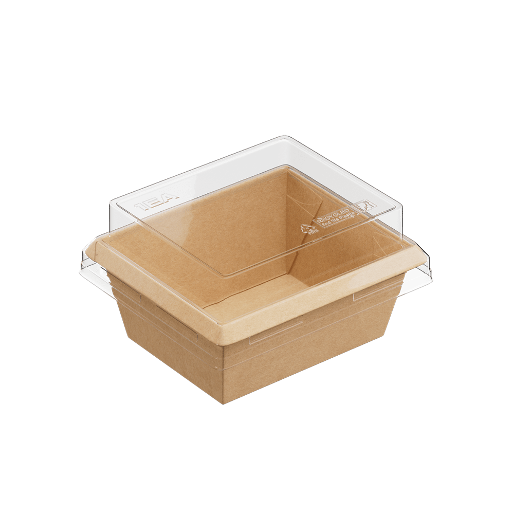 Изготовлен из прочного экологичного картона, имеет сформированный жёсткий борт (без сборки), защёлкивается в один клик без протеканий, устойчив к конденсату, с высокой барьерностью (не прожиривается), разогревается в СВЧ без крышки, произведен без клея и перерабатывается на 100%.
