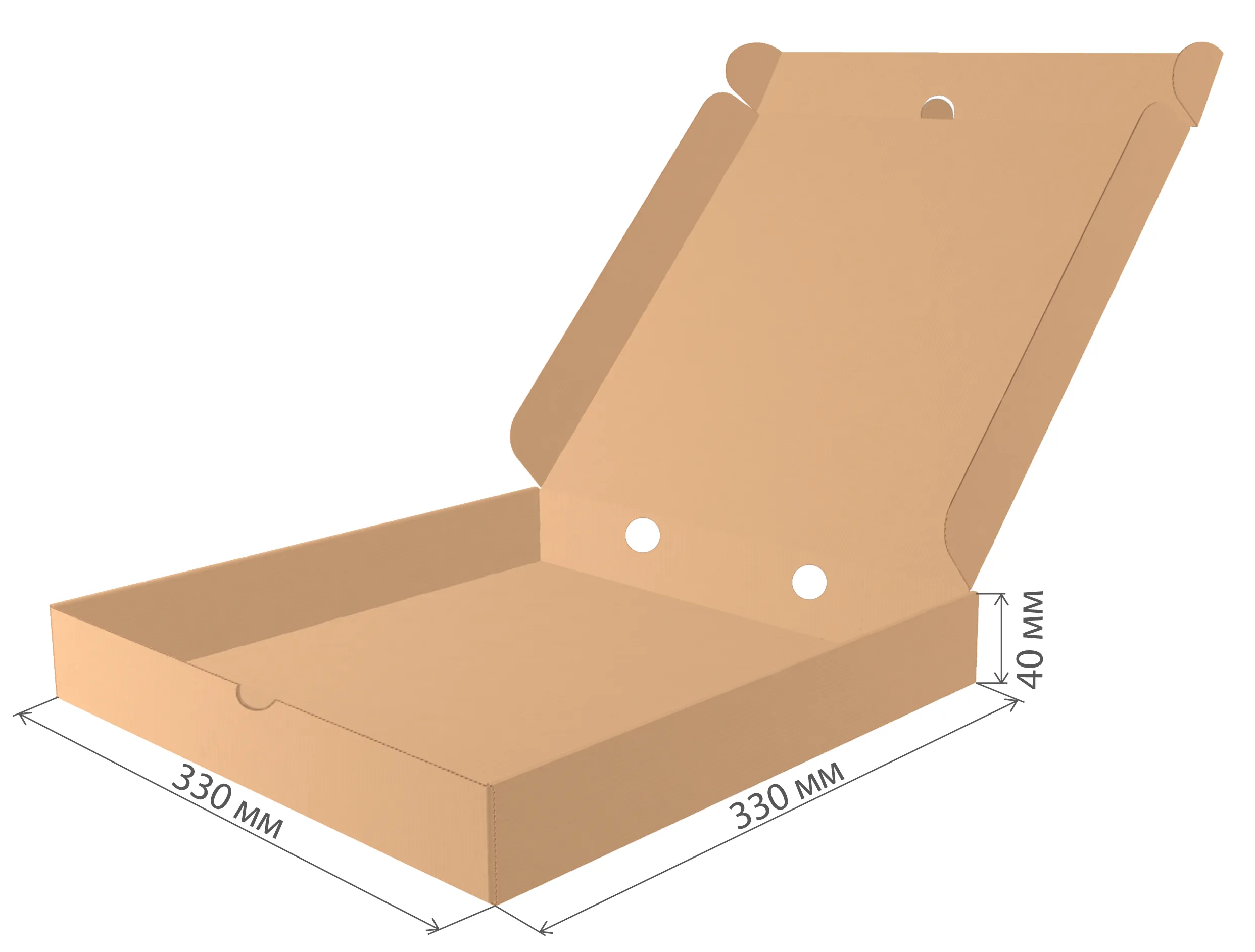Коробка под пиццу. Эти размеры идеально подходят для упаковки стандартных пицц размером до 33 см. Коробка имеет достаточное пространство, чтобы обеспечить сохранность и целостность пиццы во время транспортировки. Коробка изготовлена из высококачественного картонного материала, который обеспечивает надежную защиту пиццы от повреждений и сохраняет ее свежесть. Картонный материал также обладает экологической дружественностью, что делает эту коробку безопасной для использования.