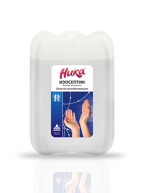 Антисептик «Ника-ИЗОСЕПТИК» 5 л — кожный спиртовой антисептик для гигиенической обработки рук и кожи, а также экспресс-дезинфекции твёрдых непористых поверхностей, обладающий выраженной бактерицидной, вирулицидной и фунгицидной активностью.