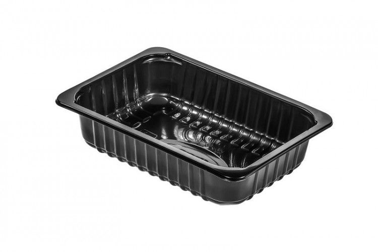 Используется как под запайку, так и под крышку для фасовки мясных и рыбных полуфабрикатов, готовых блюд, салатов, деликатесов. Можно разогревать в СВЧ-печи.Размер 210х148х47 мм