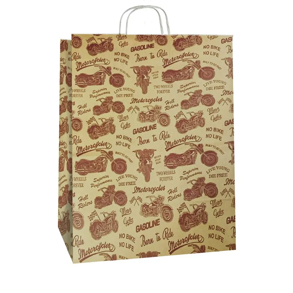 сумка бум. крафт 35х26х15 с круч. ручками Мотоцикл *