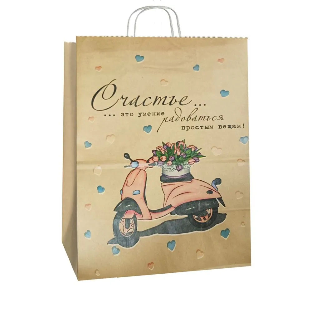 сумка бум. крафт 35х26х15 с круч. ручками Счасть есть *