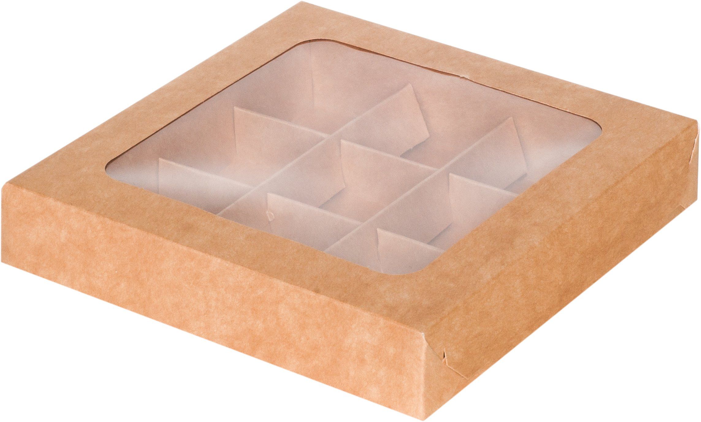 —коробка бум. 155х155х30 для 9 конфет крафт с окном
