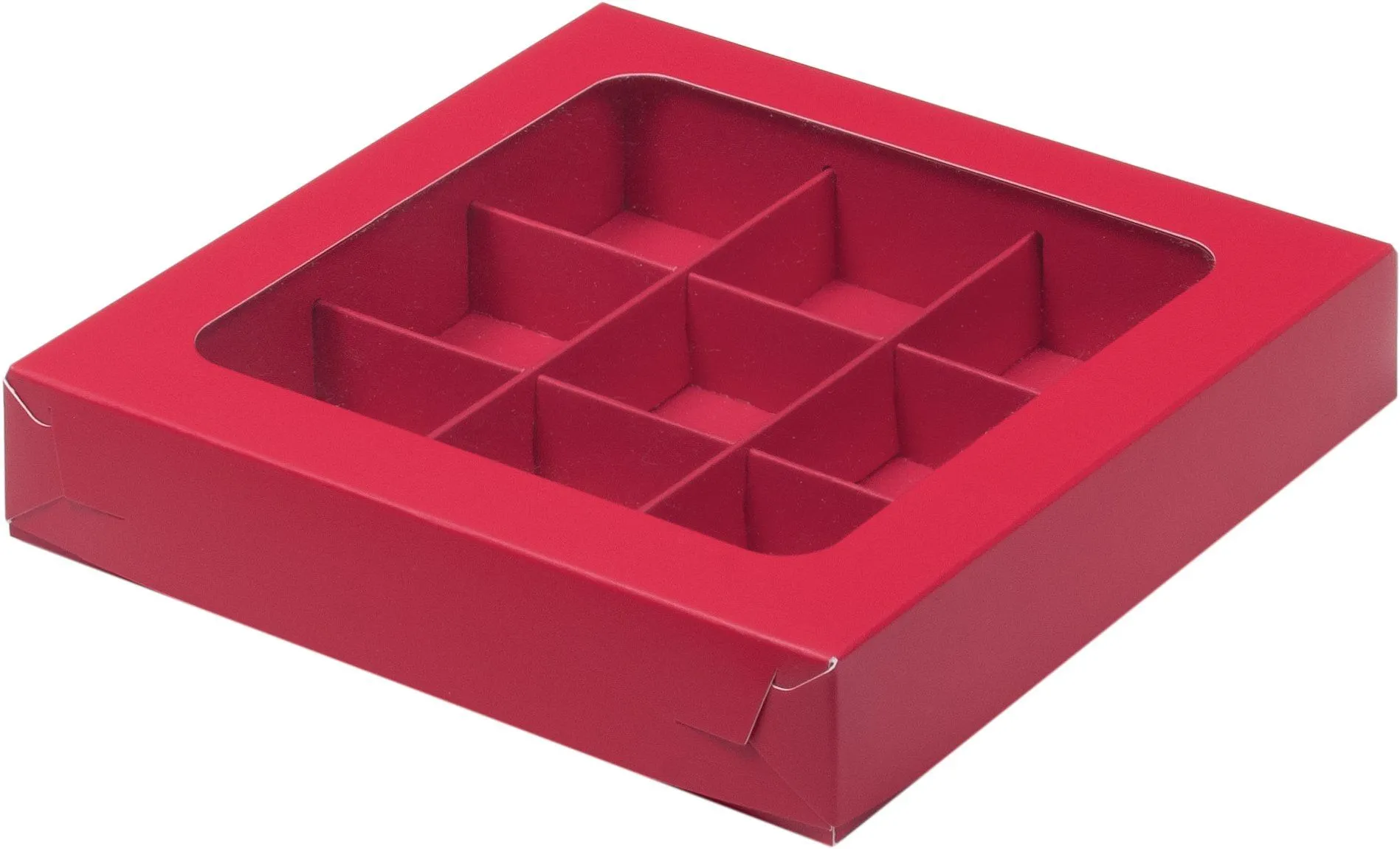 —коробка бум. 155х155х30 для 9 конфет красная матовая с окном