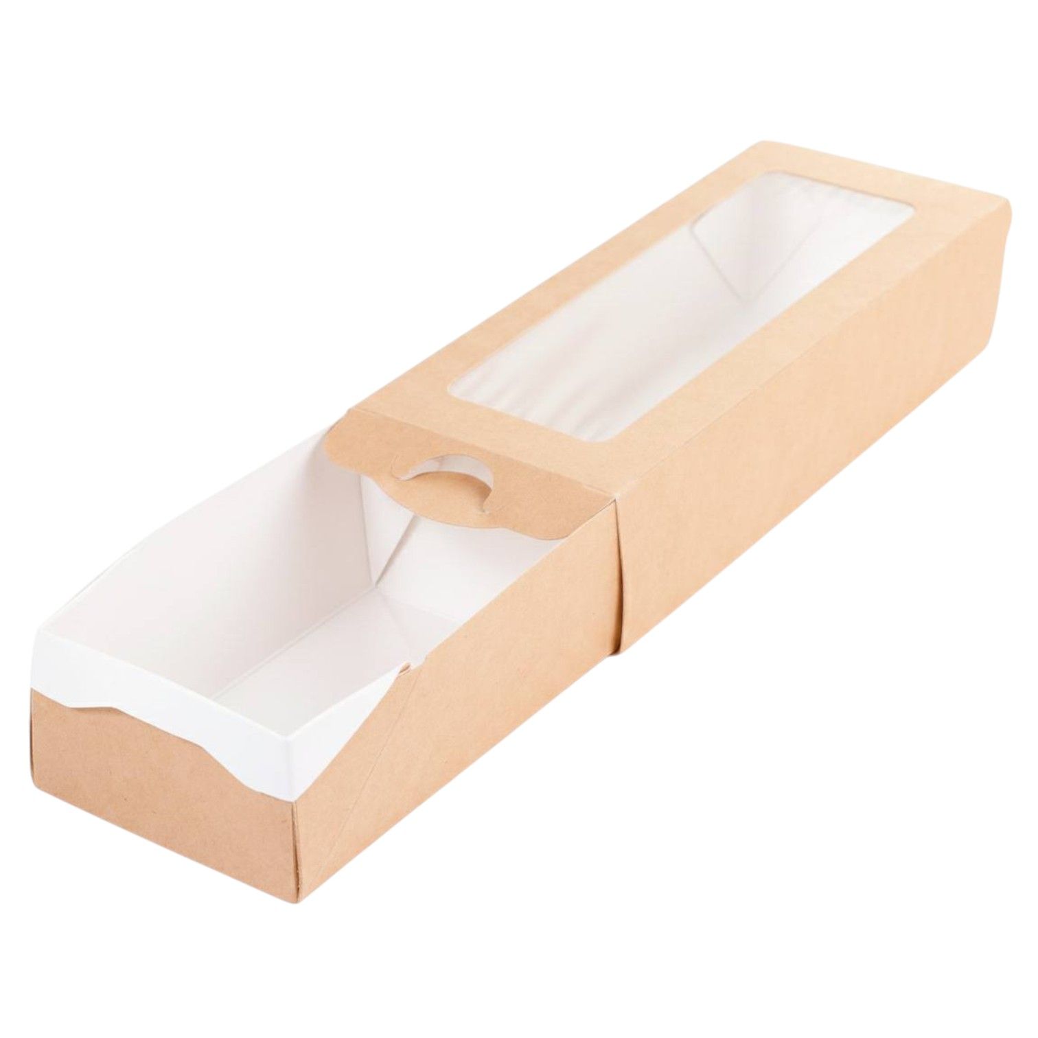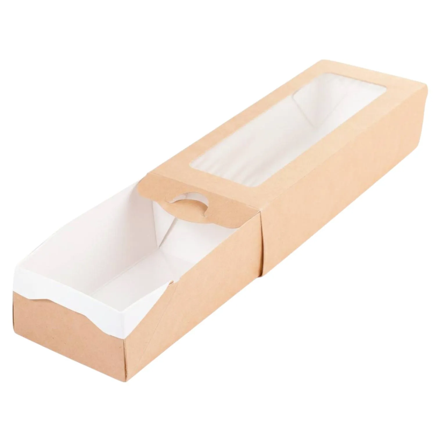 Коробка хорошо держит форму и не деформируется. Легкая самосборная конструкция экономит пространство при транспортировке и хранении. Тонкий слой ламинации защищает от влаги и жира. Натуральный цвет в ЭКО стиле для лучшей презентации продукта.
