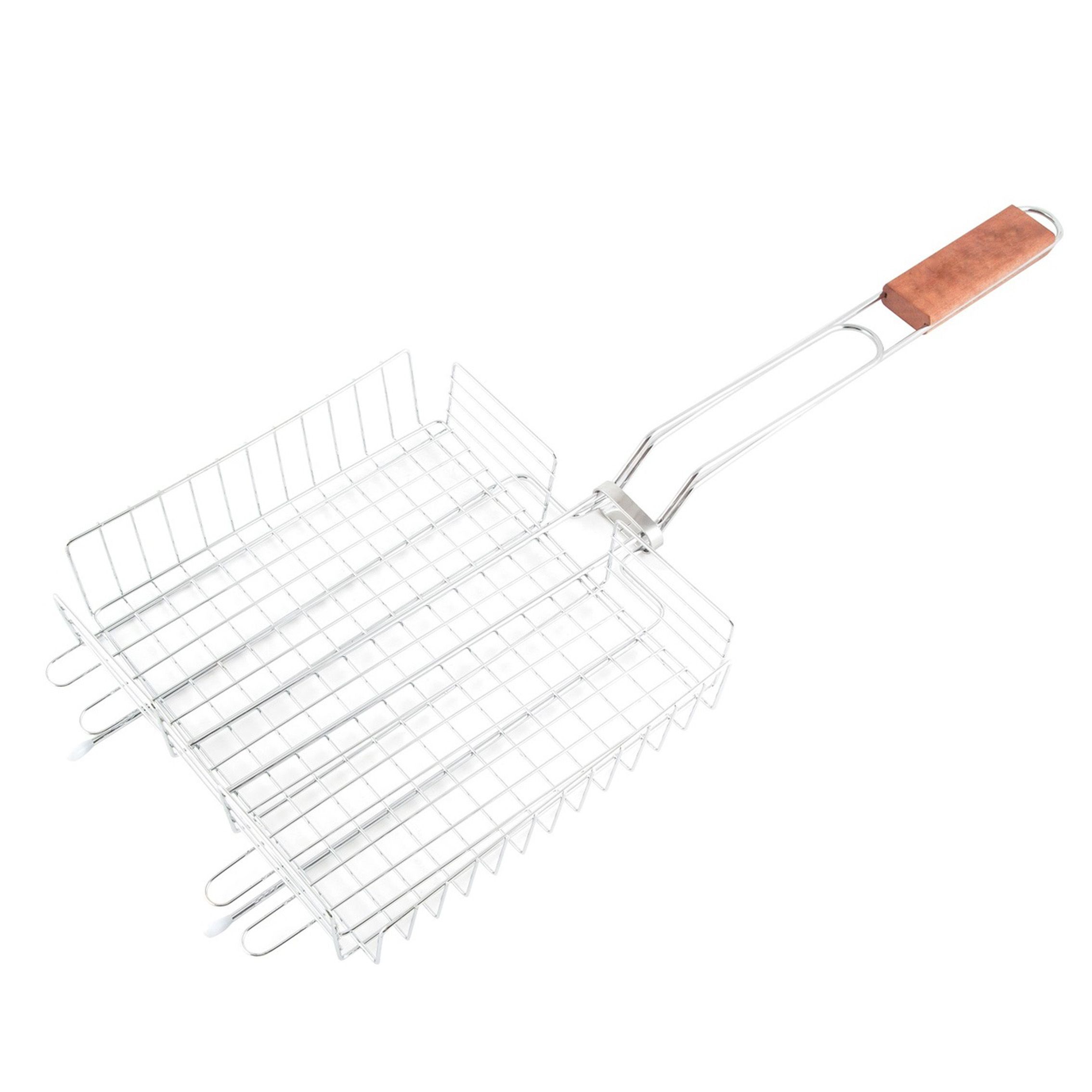 Решетка-гриль имеет деревянную ручку .Рабочая поверхность жаропрочная, не деформируется при нагревании, а также вы легко удалите с нее остатки пищи. Решетка-гриль подходит для жарки мяса, рыбы, морепродуктов и овощей на мангале.