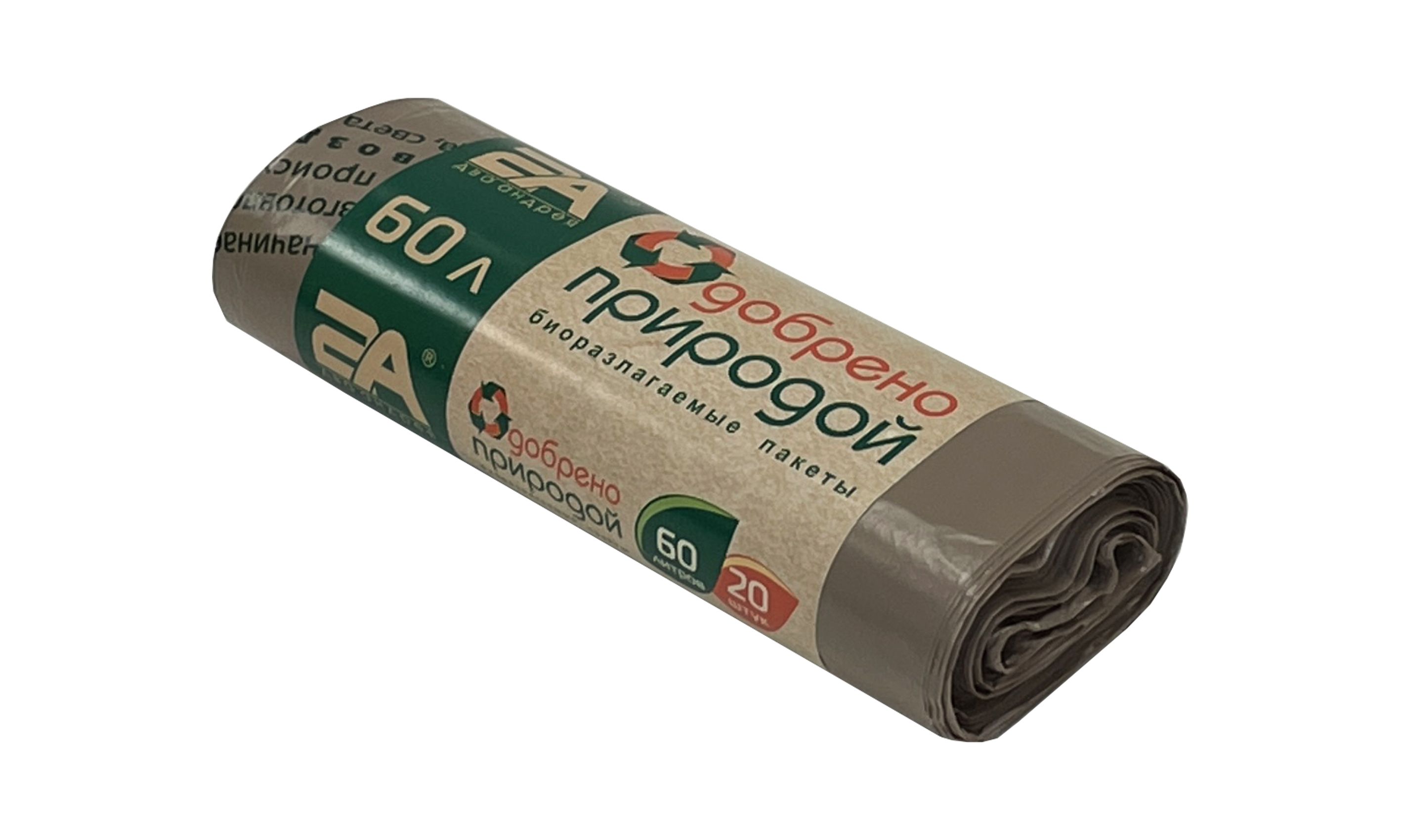 пакеты д/мусора 60л 20шт "Одобрено природой" корич.