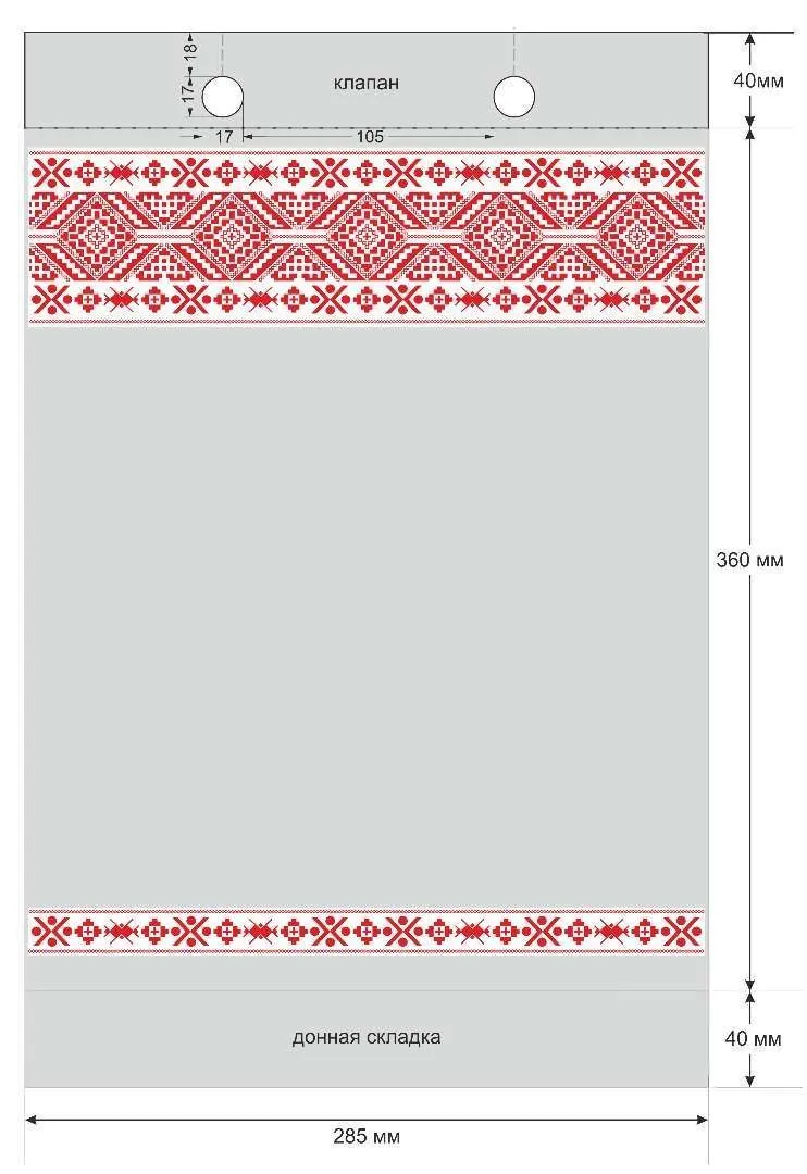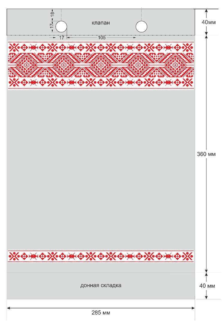 Размер пакета: 285х360+40 мм (ширина х длина + донная складка).